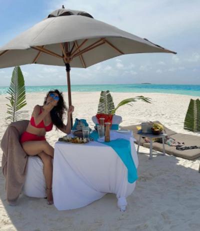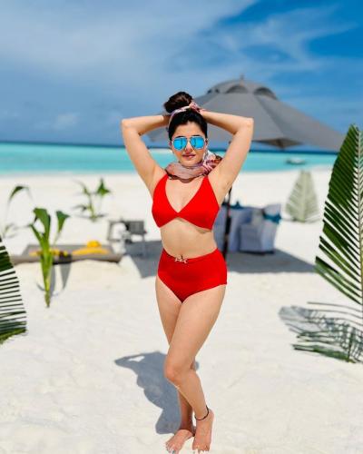 रूबीना दिलैक सध्या मालदिवमध्ये आपला पती अभिनव शुक्लासोबत सुट्ट्यांचा आनंद घेत आहे. मालदिव ट्रिपवर असताना रूबीना आपले सुंदर, ग्लॅमरस फोटो सोशल मीडियावर पोस्ट केले आहेत. रूबीनानं आता रेड बिकनीतील आपले फोटो पोस्ट केले आहेत.