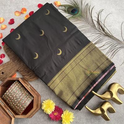 पैठणीमध्येही तुम्हाला अशी काळी चंद्रकला मिळू शकते. त्यावरचं सुरेख डिझाईन तर बघताक्षणीच उपस्थितांचं लक्ष वेधून घेतं.(chand tara black saree for makar sankranti)