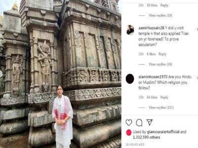हा फोटो पाहून काही सोशल मीडिया युजर्सनी तिच्यावर निशाणा साधला आहे. तुला लाज वाटायला हवी, मुस्लिम असूनही मंदिराच्या बाहेर फोटो का काढलेस असा प्रश्न ट्रोलर्सकडून विचारला जात आहे.