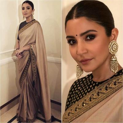 १०. दसऱ्याच्या दिवशी मस्त नटून- थटून जायचं असेल, तर अनुष्काप्रमाणे हेवी वर्क डिझायनर ब्लाउज, हेवी ॲक्सेसरीज आणि फूल मेकअप हा गेटअप छान दिसू शकेल.