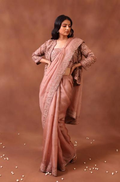 १. नेहमी त्याच त्या टिपिकल पद्धतीने साडी नेसण्यापेक्षा यंदा लग्नसराईमध्ये तुम्ही साडी विथ जॅकेट असा स्टायलिश लूक करू शकता.