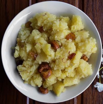रव्यात कधीही थंड दूध किंवा पाणी घालू नका. नेहमी कडकडीत गरम दूध-पाणी घाला. त्यामुळे रवा छान फुलतो आणि शीरा चिकट होत नाही.