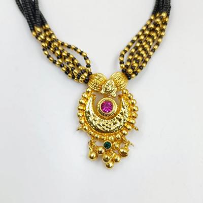यात सोन्याच्या पेंडंटचा आकार अर्धचंद्राकृती असतो. यावर बारीक नक्षीकाम, कुंदन वर्क केलेले असते.