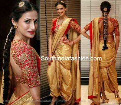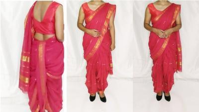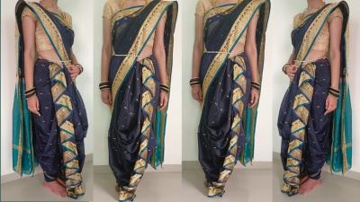 नऊवार नेसण्याचा हा एक प्रकार पाहा. या पद्धतीची नऊवार साडी दक्षिण भारतातल्या काही प्रांतात नेसली जाते.