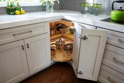 किचनमधील कोपरे अनेकदा रिकामे राहतात. कॉर्नर कॅबिनेट्स बसवल्यास या जागेचा योग्य वापर करता येतो. यामध्ये फिरणारे किंवा पुल-आउट प्रकारही असतात, जे वापरायला खूप सोपे असतात.
