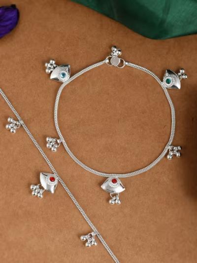 रंगेबीरंगी स्टोन असलेले पैंजण नेहमीच ट्रेंडीग असतात. मध्ये मध्ये रंगेबिरंगी स्टोन असतील तर पैंजणांची डिजाईन अधिकच उठून दिसते.