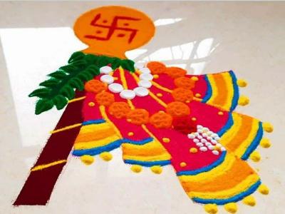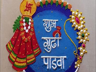 गुढी, नथ अशा पारंपरिक वस्तू रांगोळी मध्ये रेखाटून तुम्ही तुमची रांगोळी अधिक सुंदर आणि आकर्षक करू शकता.