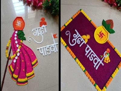गुढीपाडवा सण म्हणजे मराठी नववर्षाची सुरुवात. सगळीकडे (Simple Rangoli Designs For Gudi Padwa) दारात गुढी उभारत हा सण अतिशय आनंदात (10 Gudi Padwa Rangoli Ideas) आणि उत्साहात साजरा केला जातो. आपले कोणतेही भारतीय सण रांगोळी शिवाय अधुरेच आहेत. सणावाराला दारांत सुबक - सुंदर रांगोळी हवीच. यंदा पाडव्याला दारात किंवा गुढी भोवती काढता येतील अशा रांगोळी डिझाईन्स पाहूयात.