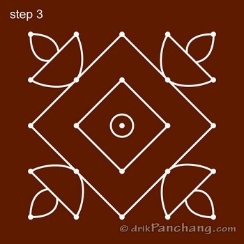 जर थोडी मोठी रांगोळी काढायची असेल तर, आडवे-उभे १२-१२ ठिपके सगळ्यात आधी काढून घ्या. नंतर लाईन्स जोडून रांगोळी तयार करा. ही रांगोळी रंग भरल्यानंतर फारच आकर्ष दिसेल.