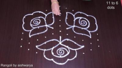 १३ ते ७ ठिपके काढून ही रांगोळीची डिजाईन तुम्हाला काढता येईल. फुलांचीही डिझाईन सुंदर आणि पारंपारिक दिसत आहे.