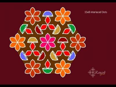 १५ - ८ ठिपके काढूनही आपण सुंदर आणि पारंपारिक रांगोळी काढू शकता. ठिपक्यांचे लाईन्स जोडून आपण फुलं काढू शकता. फुलांमध्ये आवडीचे रंग भरा. यामुळे रांगोळी सुरेख दिसेल.