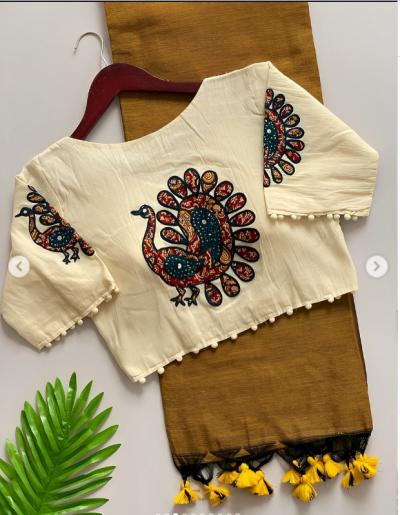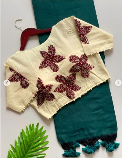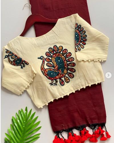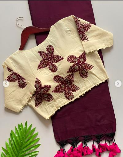 या साड्यांमध्ये एक नैसर्गिक चमक आणि साधेपणा असतो जो कामाच्या ठिकाणी किंवा घरगुती कार्यक्रमात एक क्लासी लूक देतो. (Cotton Saree With Stitched Blouse)
