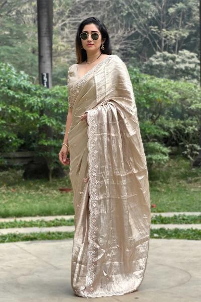 लग्नकार्य, सण-समारंभ किंवा औपचारीक पार्ट्यांसाठी टिश्यू सिल्क कॉटनच्या साड्यांना महिलांची पहिली पसंती असते.