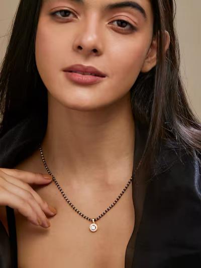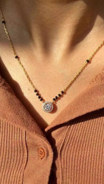 अमेरिकन डायमंडचे पेंडंट मंगळसुत्रावर उठून दिसते.