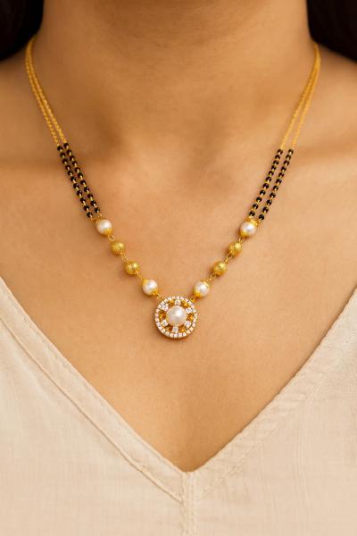 सोन्याच्या पेंडंटमध्ये जरकन किंवा अमेरिकन डायमंडसचा वापर केल्यामुळे मंगळसुत्राला अधिक चमक आणि अधुनिक लूक येतो.