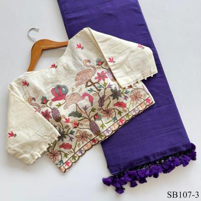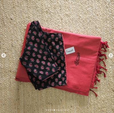 साऊथ कॉटन साडीवर कलमकारी किंवा इक्कत प्रिंटचे रेडीमेड ब्लाऊज अतिशय उठून दिसतात.