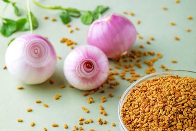 कांद्याचा रस हा केसांच्या मुळांना मजबूत करतो. तर मेथीच्या बियांमध्ये प्रथिने आणि लोह असते, जे केसांचा कोरडेपणा कमी करण्यास मदत करतात. मेथीचे दाणे पाण्यात भिजवून त्याची पेस्ट तयार करा. आणि त्यात कांद्याचा रस घालून केसांना लावा.