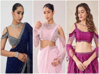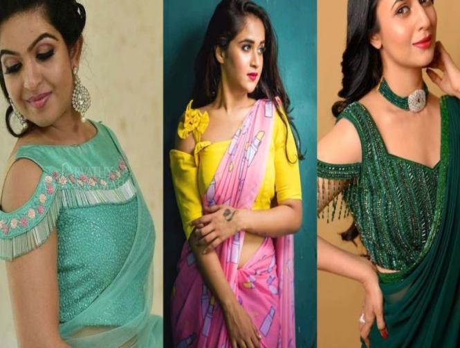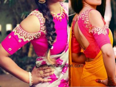 Trendy Cold Shoulder Blouse Pattern : latest cold shoulder blouse patterns : cold shoulder blouse ideas for saree : stylish cold shoulder blouse for Diwali : ट्रेंडी पॅटर्नचे 'कोल्ड शोल्डर' ब्लाऊज तुमच्या साध्यासुध्या साडीलाही देईल ग्लॅमरस लूक...