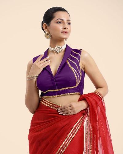 ब्लेझर किंवा कोटसारखी कॉलर असलेले ब्लाऊज अतिशय बोल्ड आणि आधुनिक दिसतात. नेटच्या साड्यांवर हा प्रकार खूप छान खुलून दिसतो.