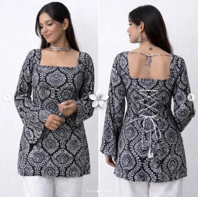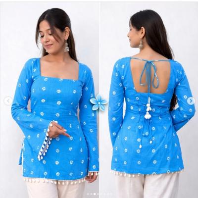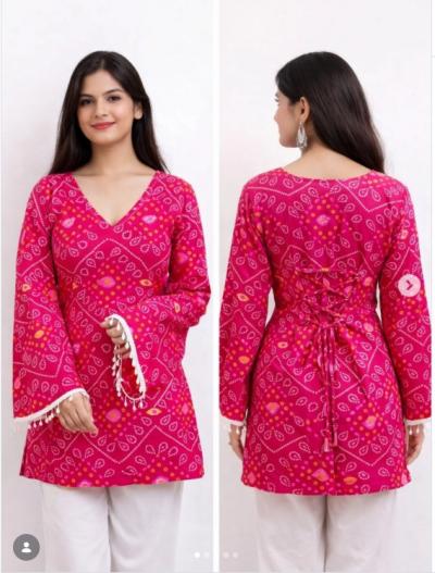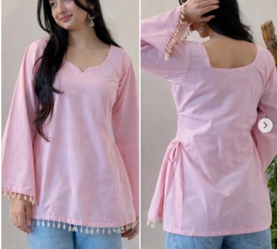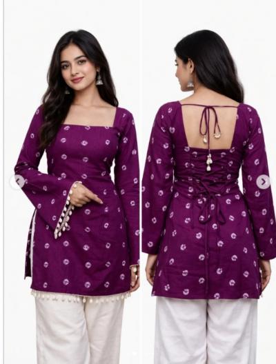 Summer Special Cotton Short Kurtis for Women : पाठीमागच्या गळ्याला आकर्षक मोठ्या आकाराचे गोंडे किंवा लटकन लावल्यानं कुर्तीला फेस्टिव्ह टच मिळतो.