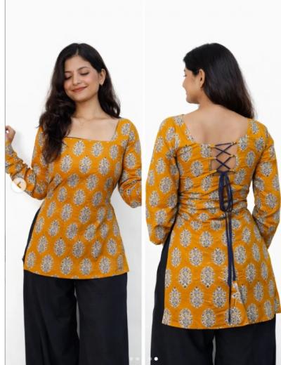 शॉर्ट कुर्ती सध्याच्या फॅशनमध्ये सध्या खूपच लोकप्रिय आहेत शॉर्ट कुर्तीला फ्रंटला व्ही नेक, अंगरखा स्टाईल किंवा चायनीज कॉलर अधिक उठावदार दिसते. यावर लहान बटणं किंवा एम्ब्रॉयडरी करून कुर्तीला स्टायलिश लूक देता येतो. (10 Designs Cotton Short Kurtis for Women)