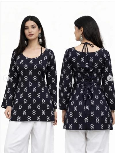 शॉर्ट कुर्तीमध्ये पेपलम स्टाईल, स्ट्रेट कट किंवा ए लाईन असे विविध प्रकार असतात. जे जीन्स किंवा धोती पँटवर छान दिसतात.