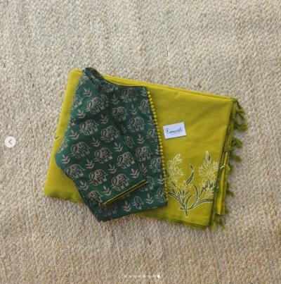 उन्हाळ्यासाठी खास साऊथ कॉटन प्रिटेंट साड्या, १० सुंदर रंग -रेडी टू वेअर ब्लाऊजसह साडी