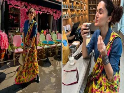 तापसी पन्नूची पाहा खास स्टाईल ब्लाऊजऐवजी शर्ट घालून नेसली साडी, बदलला लूक आणि दिसते सुंदर...