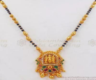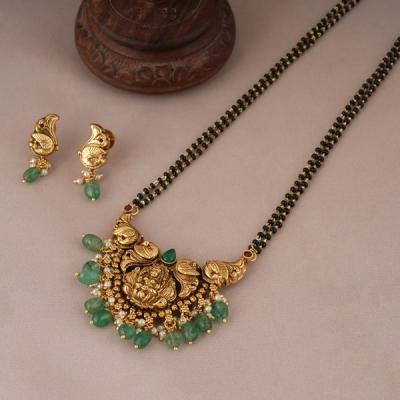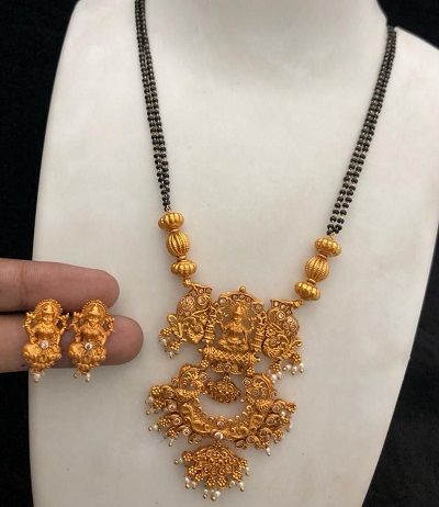 यामध्ये मंगळसूत्रांच्या पेंडंटवर ठसठशीत टेम्पल डिझाईन केलेलं असतं. यालाच साऊथ ज्वेलरी मंगळसूत्र म्हणूनही ओळखलं जातं.
