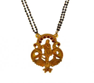 टेम्पल डिझाईन मंगळसूत्राचं वैशिष्ट्य असं की त्याच्या पेंडंटवर राम, कृष्ण, लक्ष्मी, सरस्वती, बालाजी अशा वेगवेगळ्या देवांच्या नाजुक मूर्ती कोरलेल्या असतात.