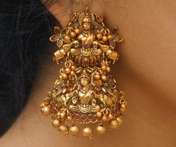 अशा पद्धतीच्या टेम्पल ज्वेलरी कानातल्यांची सध्या खूप फॅशन आहे. त्यामुळे अशा कानातल्यांचा एखादा जोड आपल्या कलेक्शनमध्ये असायलाच हवा..