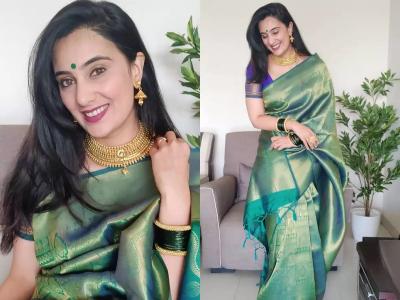 ५. कसावू साडी ही केरळमधली प्रसिद्ध साडी. नववधू लग्नात ही साडी हमखास नेसते. चमकदार मोतिया रंगाची साडी आणि त्याला सोनेरी काठ अशा पद्धतीची ही सिल्कची साडी असते.