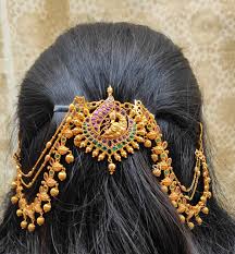 वड्डानम डिझाइनचे हे हेअर ब्रोच अत्यंत भरीव आणि देखणे दिसत आहे. आपल्या केसांवर हे हेअर ब्रोच अगदी सुरेख दिसेल. त्यालाही खाली झुमर आहे.