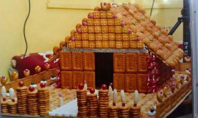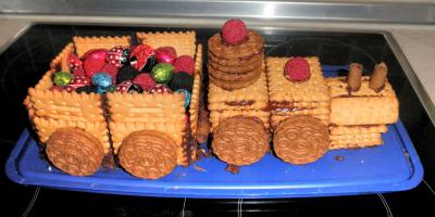 ४. सोफासेट प्रमाणेच बिस्किटांची रेल्वेही अनेक ठिकाणी दिसून येते. थोडंसं बारकाईने निरिक्षण केलं तर अशी रेल्वे घरी बनवणं मुळीच अवघड नाही.