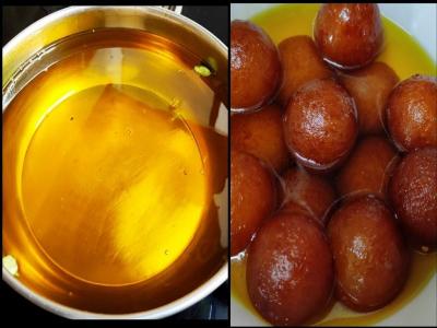 गुलाबजाम तळताना तेल किंवा तूप हलकं गरम करून मग मंद आचेवर गुलाबजाम तळा. तेलात किंवा तुपात गुलाबजाम सोडा आणि चमच्याच्या मदतीने तेल हलवत रहा. लक्षात ठेवा, गुलाबजामवर हलकासा लेयर तयार होईपर्यंत चमचा त्याला चिकटवू नका. तुम्ही कढई हलक्या हाताने हलवू शकता, त्यामुळे गुलाबजाम तळताना एकमेकांना चिकटणार नाहीत. हलकासा सोनेरी रंग येईपर्यंत गुलाबजाम तळा. तळताना पाक हलका गरम करा आणि नंतर गुलाबजाम पाकात सोडा. थंडगार पाकात गुलाबजाम सोडू नयेत. पाक हलका गरम असला तरच तो गुलाबजाममध्ये व्यवस्थित शोषला जाऊन गुलाबजाम मऊ - लुसलुशीत होतात.