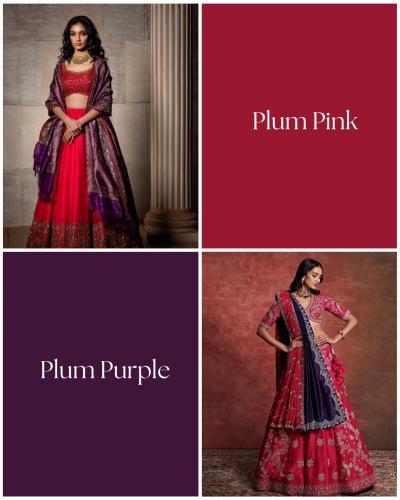 लग्नसराईत हटके पण एलिगंट लुक हवा असेल तर प्लम पिंक आणि प्लम पर्पल हे कॉम्बिनेशन एकदम परफेक्ट ठरते. प्लम पिंक (Plum Pink) आणि प्लम पर्पल (Plum Purple) हे कॉम्बिनेशन म्हणजे एक अतिशय 'रिच' आणि 'रॉयल' दिसते. एकाच रंगाच्या दोन वेगवेगळ्या छटा (Shades) एकत्र आल्यावर जो 'मोनोक्रोमॅटिक' पण तरीही 'कॉन्ट्रास्ट' लूक मिळतो. हे रंग गडद असल्याने ते भारतीय स्किन टोनवर अतिशय खुलून दिसतात आणि लग्नासारख्या मोठ्या कार्यक्रमात एक वेगळीच छाप पाडतो. प्लम पर्पल लेहेंग्यावर प्लम पिंक रंगाच्या रेशमी धाग्यांनी केलेलं नक्षीकाम हल्ली खूप ट्रेंडमध्ये आहे. हे दिसायला अतिशय नाजूक आणि महागडं वाटतं. प्लम पर्पल रंग 'वेलवेट' फॅब्रिकवर अतिशय रॉयल दिसतो. त्यावर जर हॉट प्लम पिंक रंगाचं सिल्कचं जॅकेट किंवा ब्लाउज असेल, तर तुमचा लूक एखाद्या महाराणीसारखा दिसेल.