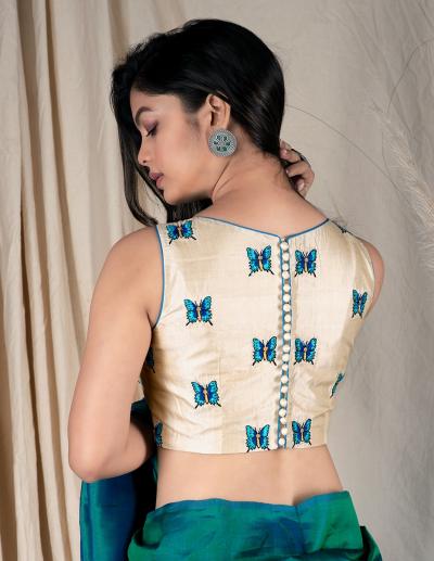 ब्लाऊजचा मूळ रंग आणि गळ्याच्या बॉर्डरचा डिझाईन्सचा रंग वेगवेगळा ठेवल्यास लूक अधिकच उठून दिसतो.
