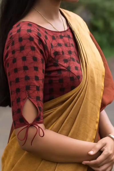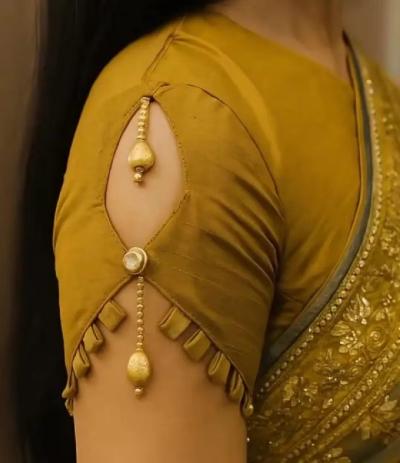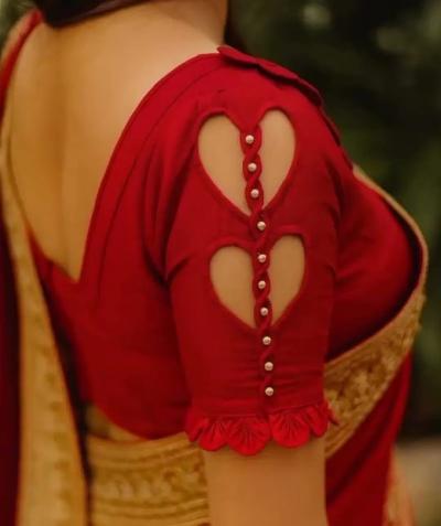 उन्हाळ्यासाठी कट-आउट स्लीव्हज अतिशय आरामदायी आणि ट्रेंडी आहेत. भरजरी भरतकाम केलेल्या ब्लाऊजमध्ये कोपर किंवा खांद्यापाशी दिलेले कट-आउट्स एक बोल्ड आणि मॉडर्न स्टेटमेंट तयार करतात. कोणत्याही साध्या साडीवर हा पॅटर्न उठून दिसतो.