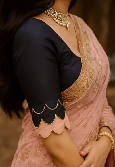 सध्या स्कॅलॉप कट वर्कची मोठी क्रेझ आहे. बाह्यांच्या बॉर्डरला अशा प्रकारचे कट दिल्याने ब्लाऊजला एक वेगळीच फिनिशिंग मिळते. हे डिझाईन नेटच्या किंवा काठपदर साडीच्या ब्लाऊजवर अतिशय सुंदर दिसते.