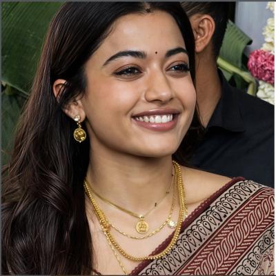 या मंगळसुत्रात कोडवा आणि तेलुगू विवाह परंपरांचा अद्भूत संगम दिसून आला. यात केंद्रस्थानी लक्ष्मीचे रुपांकन होते जे सौभाग्य, समृद्धी आणि आशीर्वादाचे प्रतीक आहे. (Trending Rashmika Mandanna Mangalsutra Design)