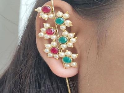 नीडल ईअररिंग कफ मोत्यांनी आणि चमकदार स्टोन्सनी सजवलेले असतात, जे तुम्हाला रॉयल आणि एलिगंट लुक देतात. पार्टीवेअर किंवा खास प्रसंगांसाठी हे उत्तम पर्याय आहेत. `