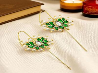 जर तुम्हांला रंगीबेरंगी कुंदन वर्क आवडत असेल तर तुम्ही अशा प्रकारचे कुंदन वर्क असणारे ट्रेंडी नीडल एअरकफ एअररिंग घालू शकता.