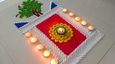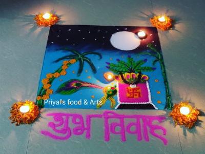 अतिशय कल्पकतेने काढलेली ही रांगोळी बघताक्षणीच मन आकर्षित करून घेणारी आहे..