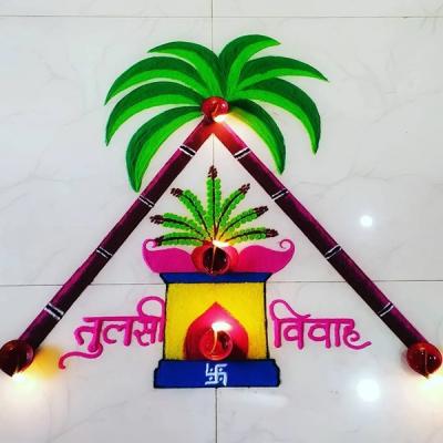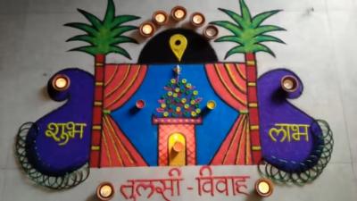 तुळशीच्या लग्नाच्या दिवशी जर तुमच्या दारात अशी रांगोळी असेल तर घरभर प्रसन्नता, मांगल्य आणि आनंद पसरेल..