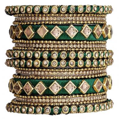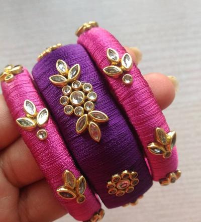 सिल्कचा धागा वापरून थ्रेड वर्क केलेल्या बांगड्या आणि त्यावर जडवलेले कुंदन तुमच्या हाताला नक्कीच शोभा आणतील..