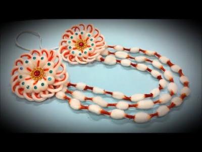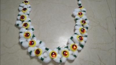 या पद्धतीनेही तुम्ही वस्त्रमाळ करू शकता. यामध्ये कापसाच्या माळीला दोरे बांधण्यात आलेले आहेत. त्यामुळे कापूस एखाद्या टपोऱ्या मोत्याप्रमाणे दिसतो आहे.
