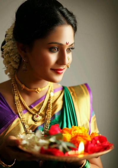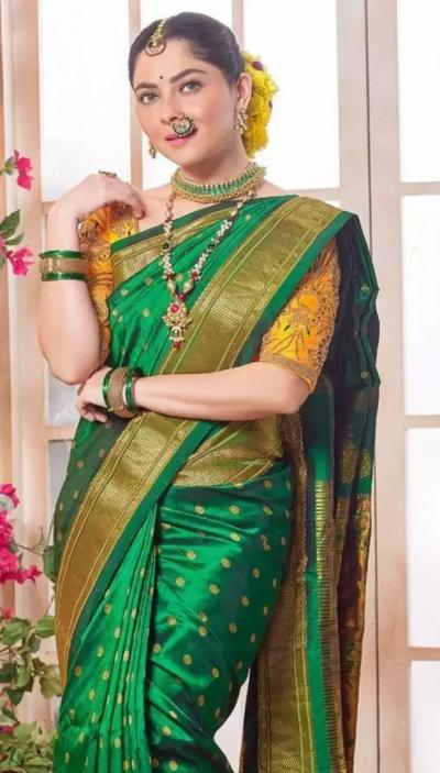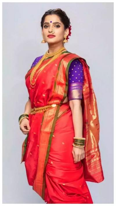 नऊवारीच्या ऐवजी साडी नेसून असा अगदी ट्रॅडिशनल लूक करू शकता. सणाचा आनंद नक्कीच वाढतो.