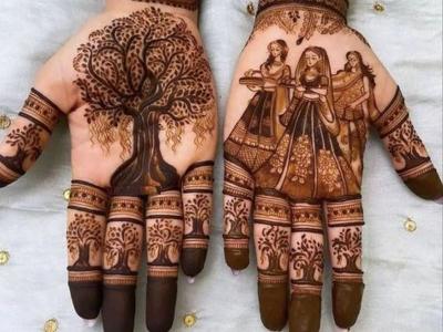 आपण आपल्या हातांवर वडाचे झाड व त्याभोवती फेरे घेणारी स्त्री अशी सुंदर मेहेंदी देखील काढू शकतो. वटपौर्णिमेच्यासणानिमित्त ही मेहेंदी डिझाईन तुमच्या लूकमध्ये अधिक भर पाडेल.