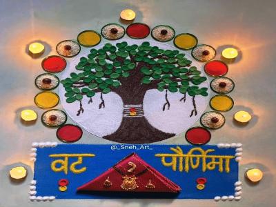 वटपौर्णिमेला वडाच्या झाडाची पूजा केली जाते, यामुळे प्रामुख्याने या सणाचे महत्व ओळखून आपण वडाचे झाड रांगोळीत असेल अशा वेगवेगळ्या डिझाईन्सच्या सुंदर व आकर्षक रांगोळ्या काढू शकतो.