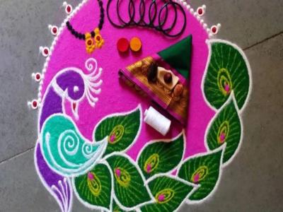 वटपौर्णिमेला हिरवा चुडा, तांदूळ, गहू, यांसारख्या अनेक वस्तूंचे विशेष असे महत्व असते. आपण हिरव्या चुड्याच्या मदतीने देखील अशी सुंदर रांगोळी काढून सजवू शकतो.